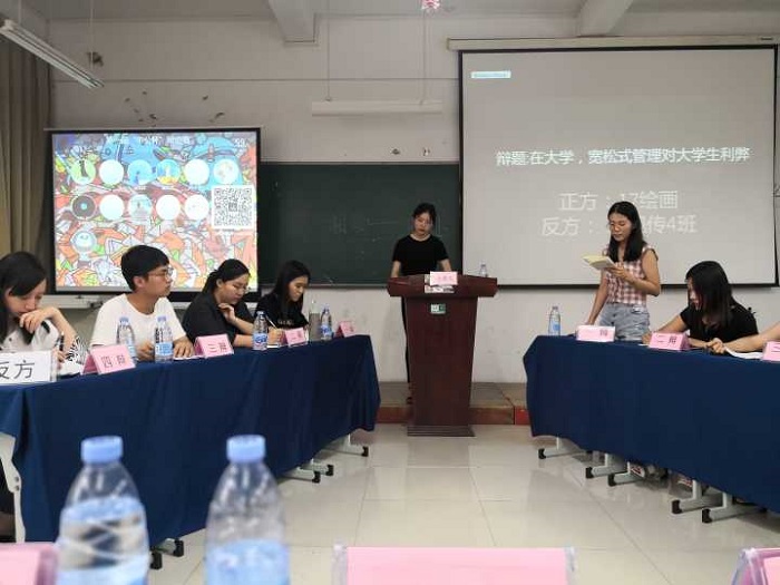 经过6月7日的初赛,共有六支队伍进入复赛和决赛。比赛评委由系团总支负责人、辅导员和来自各班的学生大众评审担任。每支队伍有四名辩手,辩论双方和辩题均由现场抽签决定。选手们就:“在大学应该宽松管理还是严格管理”;“大学生创业的利弊”;“情商重要还是智商重要”等问题进行了激烈辩论,选手们引经据典,慷慨陈词,在开篇立论环节对己方观点进行清晰地描述,自由辩论环节双方针对对方观点展开思想交锋,最后双方四辩作出精彩总结。比赛气氛十分热烈,各班级同学组成的啦啦队也到场为本班的队伍加油助力。