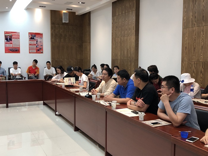 接下来,在凤阳县文化馆报告厅,凤阳凤画省级非遗传承人王金山为大家介绍了凤阳凤画艺术。凤阳花鼓市级非遗传承人熊冠霞为大家介绍花鼓的构造与演奏技巧,并亲自示范技术要点。非遗传承人与我院师生一起面对面座谈、手把手交流,增进了双方的了解,也有利于师生更好地了解和学习这门艺术。