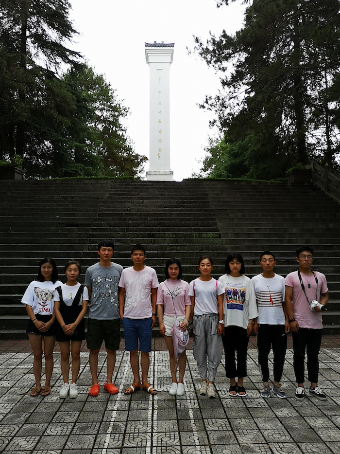 7月6日,戏剧影视系“三下乡”调研服务团来到调研的第一站——王步文故居、大别山烈士陵园。故居位于温泉镇资福村塘坳组,王步文的出生地。故居坐北朝南,四周小丘环抱,松竹常青,房舍砖木结构,前后两幢,跨院连结。故居建筑面积465平方米,占地5亩,于1998年5月被确定为省级文物保护单位。大别山烈士陵园是国家级烈士纪念设施、安徽省重点文物保护单位、安徽省爱国主义教育基地、安徽省国防教育基地和安徽省廉政教育基地。年接待旅游瞻观群众逾10万人次,是安徽省重要红色旅游景点。园内建有大别山烈士纪念馆、烈士纪念碑、红军亭、英雄群雕、百步台阶、烈士墓群等纪念设施和建筑物。形象地刻画了以王步文烈士为代表的一代英雄豪杰,为人民求解放不屈不挠,前仆后继,英勇牺牲的悲壮场景。