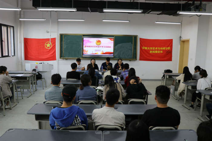 为积极响应中华全国学联关于发起《学生会、研究生会干部自律公约》的倡议,进一步加强新闻播音系学生干部队伍精神文明建设,10月10日上午,安徽大学艺术与传媒学院新闻播音系团总支在美术楼103教室召开了《学生会、研究生会干部自律公约》专题学习暨新生团干交流见面会。
