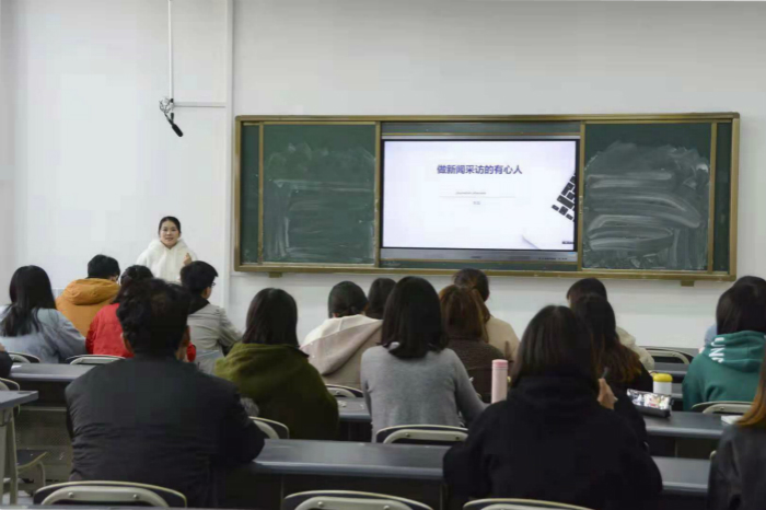 如何做新闻采访的有心人?11月26日中午,《校媒大讲堂》第一期在美术楼104教室正式开讲。我院大学生通讯社指导老师张蕊以“做新闻采访的有心人”为题,分享了校园新闻采写的心得。大学生通讯社全体社员到场学习,大学生通讯社新闻中心主任刘晓宇主持此次讲座。