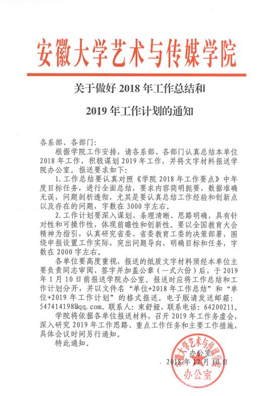 关于做好2018年工作总结和2019年工作计划的通知