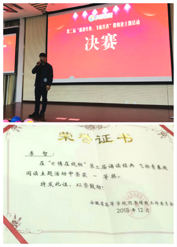 2018年12月6日,由安徽省高等学校图书情报工作委员会主办,e博在线承办的第二届“诵读经典 飞扬青春”微阅读主题活动决赛在中国科学技术大学西区图书馆隆重举行,100余位来自全省高校的老师、同学到场。