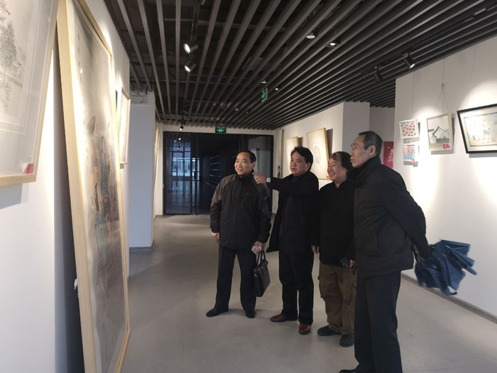12月26日上午,美术设计系邀请机关党总支退休党员胡献平、戏剧影视系党总支退休党员董兆和等离退休党员干部参观“庆祝改革开放40周年书画展”。美术设计系党总支书记、系主任罗耀东,戏剧影视系党总支副书记陈明海,美术设计系副主任刘勇陪同参观。