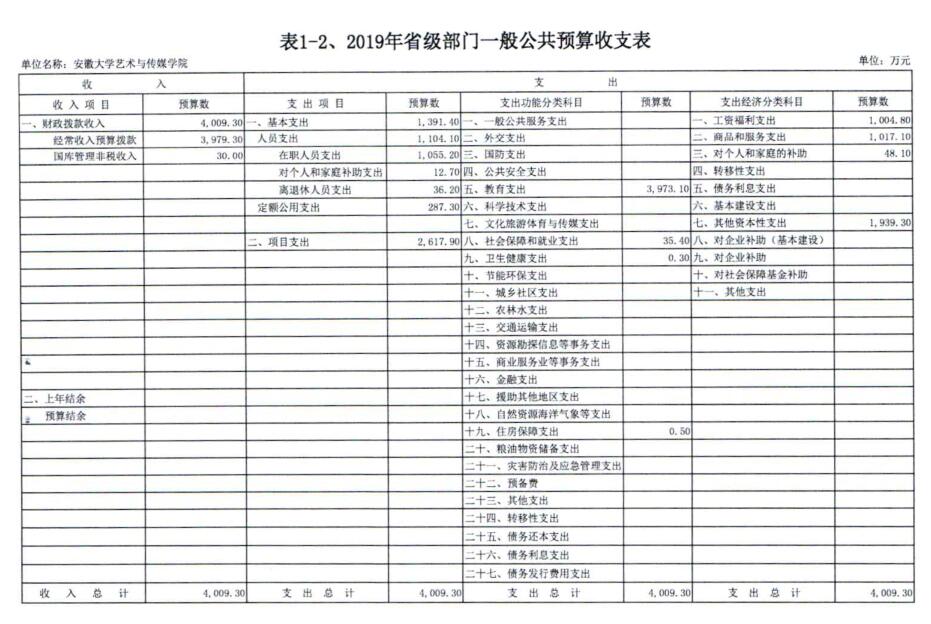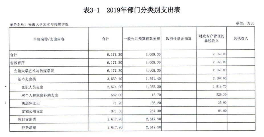 安徽大学艺术与传媒学院2019年预算信息公开