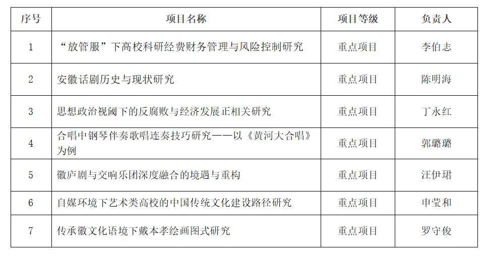 安徽大学艺术与传媒学院2019年省级人文社科项目评审结果