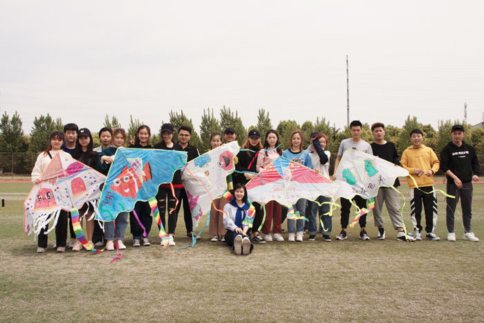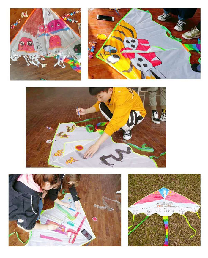 风筝节共有两个环节。8组同学首先在规定时间内对风筝进行图案绘画创作,随后进入操场放飞环节。历经一个多小时的不断尝试,所有风筝成功放飞。最后经学生会和老师的讨论,前三名分别为龙鸣队、天宫岁月队、巴啦啦小魔仙队。