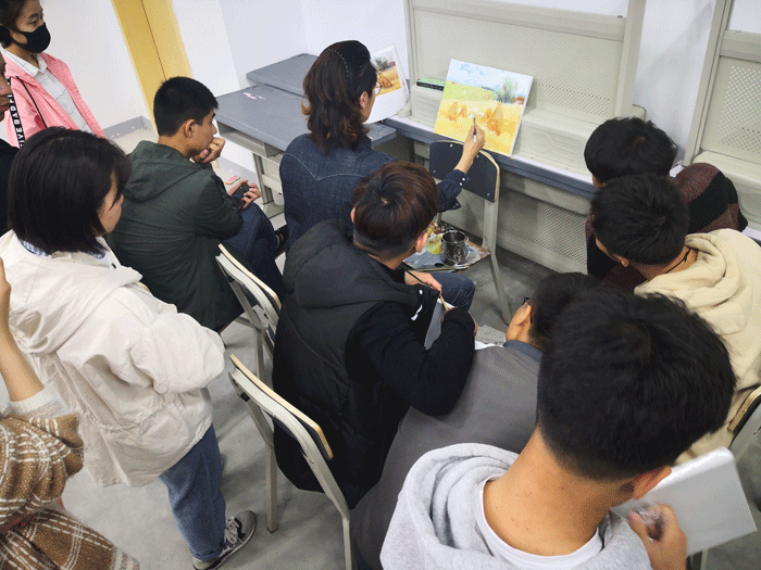 指导老师郗文静讲解了如何鉴赏风景油画,通过画面对同学们提出的疑问一一解答。
