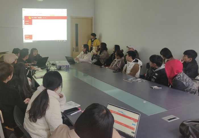 罗雯慧通过PPT向大家展示了智慧团建网上操作系统界面,详细演示了有关“三会两制”“团课”“团日活动”相关材料的具体上传步骤,并下发了近期主要团学工作安排。会上,各班团支书就自身遇到的有关操作问题现场讨论。