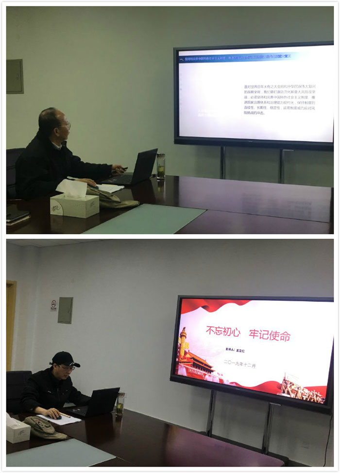 12月18日,机关党总支五支部在艺术设计楼401会议室开展党课学习,重点进行了党的十九届四中全会精神解读和“不忘初心、牢记使命”主题教育的认知与理解。党课由支部书记王立仁主持,五支部各正式党员、预备党员、入党积极分子均参加学习。