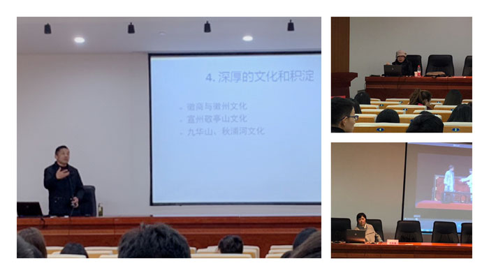 为了让我院学生更好了解非遗、发现非遗、保护非遗,提升文化自觉,增强文化自信,自觉发挥艺术专长参与到非遗传承保护中来,本学期公共教学部首次将非遗文化引入课堂,从学术理论角度结合大量非遗实例,分专题为2019级本科生开课。本学期《非物质文化遗产概论》课程,由学院党委书记、院长樊嘉禄以及安徽省艺术研究院院长李春荣、安徽省非物质文化遗产保护中心研究部主任胡迟主讲。