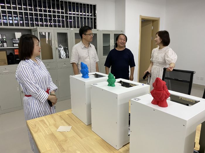 座谈会结束后,王建民与美术设计系部分教师座谈并参观了美术楼内各实训室。