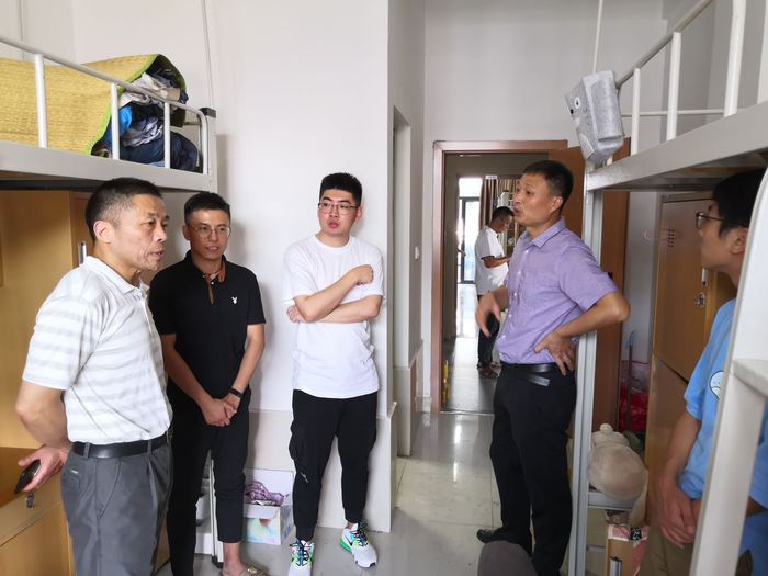 9月5日上午,新闻播音系主任助理张井水,学管办主任秦帅,19级专职辅导员陈伟伟、丁翔等一行来到学生宿舍对学生开学有关工作进行指导和检查。