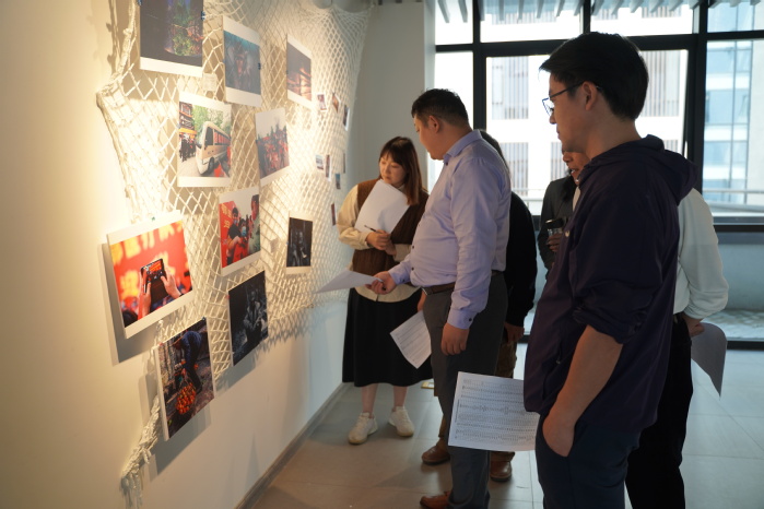 展选现场,美术设计系党总支书记罗耀东向评审团介绍参赛作品作者的创作背景、创作意图和表现技法。展出的作品不仅表达个人情感和审美认知,还融入了对校园生活的写照和国家热点的关心,主题新颖、体裁丰富、形式多样。