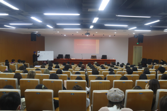 11月16日上午,在新闻播音系邀请下,小说演播人、配音演员、配音导演张震在美术楼报告厅主讲《影视剧配音与有声作品演播》专题。200多名师生到场聆听。