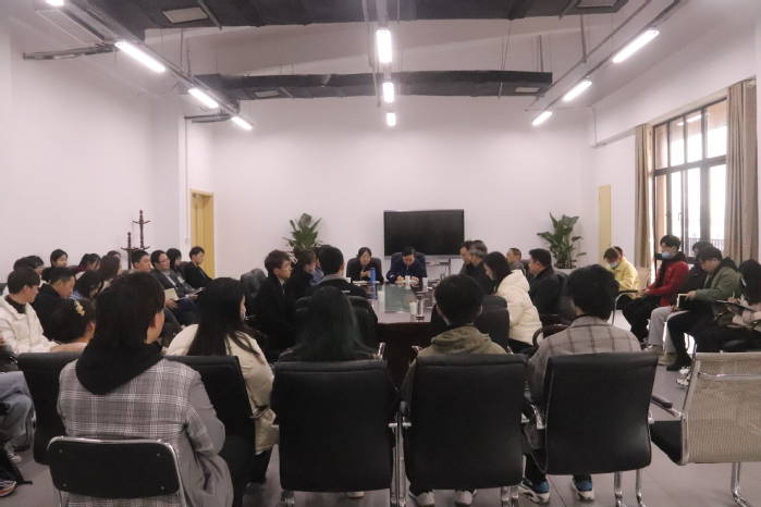 2021年3月17日下午2点,新闻播音系在播音楼513会议室举行了2021年春季新学期大学生思想动态调研座谈会。校党委委员、宣传部部长吴孔铎,保卫处处长陈雪峰,校团委书记、学生处副处长陈明,总务处副处长姚君,教务处教学行政办公室主任陈昀岚,新闻播音系党总支书记、主任王琍琍,新闻播音系党总支副书记、副主任张井水及新闻播音系意识形态工作小组成员、学生代表参加会议。