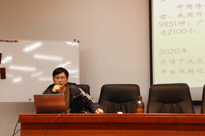 3月24日下午,由新闻播音系主办的2021年首期“少荃湖传媒讲坛”在美术楼学术报告厅举行。合肥学院副教授王冠博士以“媒体融合视域下的视频新闻生产”为题做讲座。讲座由系教科研办公室主任周正主持。