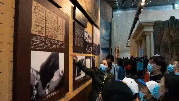 在渡江战役纪念馆外的胜利之师雕像前,全体成员瞻仰革命先烈塑像。纪念馆内,大家依次参观了六大主题展厅和渡江战役烈士名录。参观者们在书、布、枪等历史文物和声、光、电等现代科技中感受“钟山风雨起苍黄,百万雄师过大江”的厚重历史,在全景式描绘的壮阔场景里领悟革命先烈们勇往无前、乐观豪迈的革命英雄主义精神。在“百万雄师过大江”的雕塑前,支部党员们在支部书记陈伟伟的带领下重温入党誓词,进一步强化党员意识、增强党性观念。