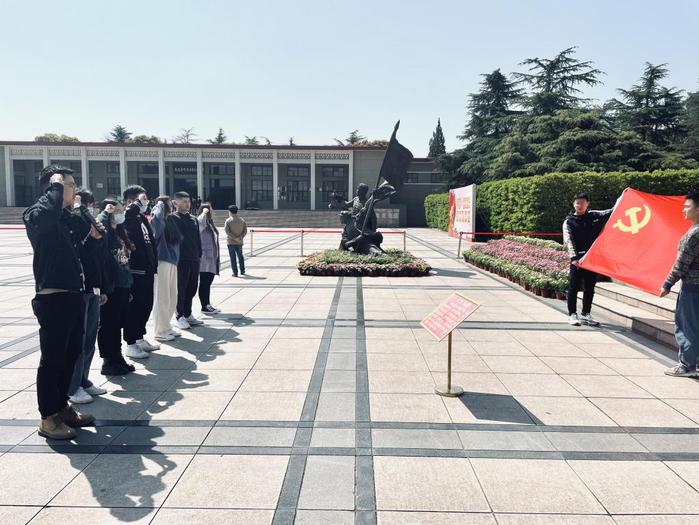 为深切缅怀革命先烈,颂扬革命英雄的崇高精神,树立共产主义的坚定信念,进一步教育支部党员牢记使命、从党史中汲取力量,4月9日上午,美术设计系学生党支部组织委员阮仁斌、宣传委员王亚鹏带领支部党员及入党积极分子,来到大蜀山烈士陵园开展祭奠及爱国教育活动。