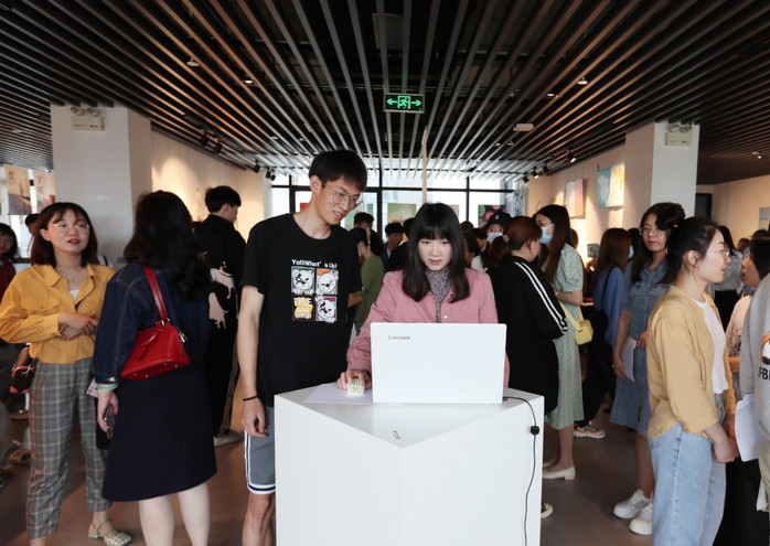 5月13日上午,美术设计系2021届视觉传达设计专业毕业生设计作品汇报展《2021?》在美术楼二楼展厅隆重开幕。校党委书记周明洁,校党委副书记、院长樊嘉禄,党务负责人沈端良及审计处处长张志云、教务处处长韩大国等参加展会开幕式。