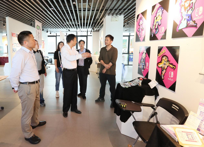 展览期间,周明洁对同学们的设计作品连连称赞。他表示毕业设计展不仅只是学习成果的总结,还要思考从怎样兑现设计作品的商业价值出发,聚焦社会发展需求,更要结合安徽地域特色,特别是要挖掘和衍生皖南徽派文化、皖西红色文化,推动文创产品的开发利用。