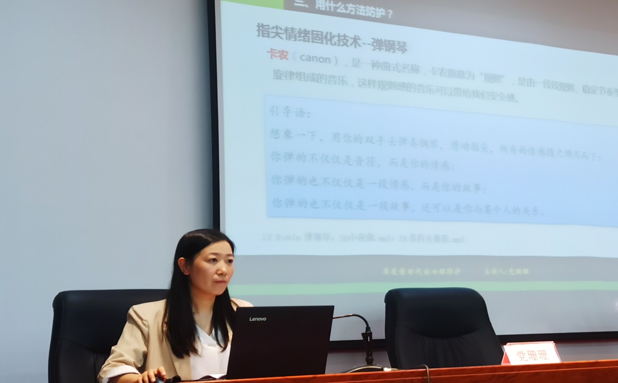 在5月25日开展的心理健康专题讲座中,不仅有辅导员和学生心理委员参加,校内安保和物业的服务人员中未当班的人员也都组织参加学习了有关心理创伤及处理方法的相关内容。