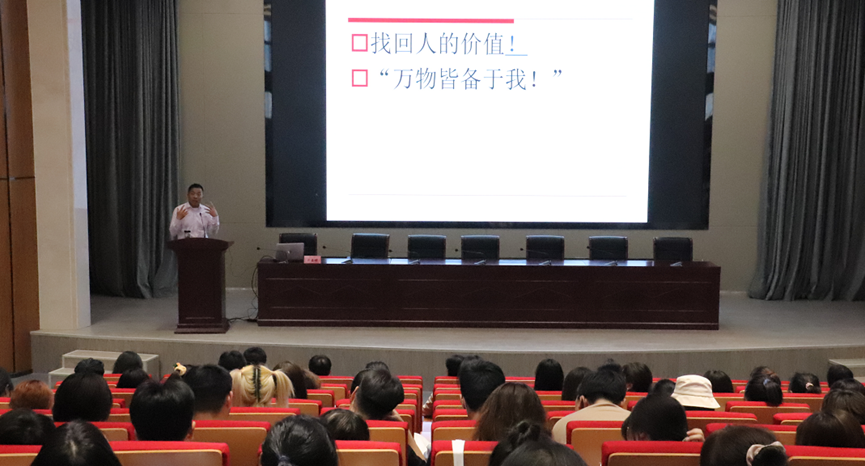 5月24日晚,校党委副书记、院长樊嘉禄教授在综合楼五楼报告厅给新闻播音系学生开展“顺应自然 品味人生”为主题的心理健康讲座,从发现美好的事物开始建立起快乐人生观,从辩证角度看待即时快乐与长久快乐的关系,从服务社会来体现自身价值获得更加长久的快乐等多角度诠释了“万物皆备于我”,要品味快乐人生,方不负最美好的时代,不负自己的人生要义。樊嘉禄深入浅出的精彩讲演,不断引起全场的掌声互动,参与听讲的师生都表示获益匪浅。