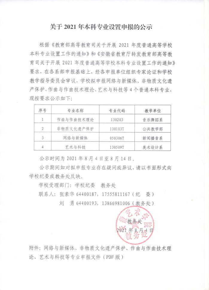 关于2021年本科专业设置申报的公示