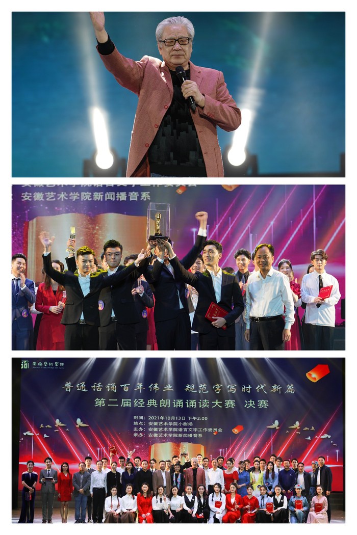 决赛邀请安徽广播电视台新闻中心播音部主任、播音指导杨锦,安徽省朗诵艺术学会专委会委员胡长江,学院语委副主任、新闻播音系党总支书记、主任王琍琍,学院语委委员、新闻播音系副主任尹广富,学院语委委员、新闻播音系教授蔡正兰共同组成专家评审团担当评审。
