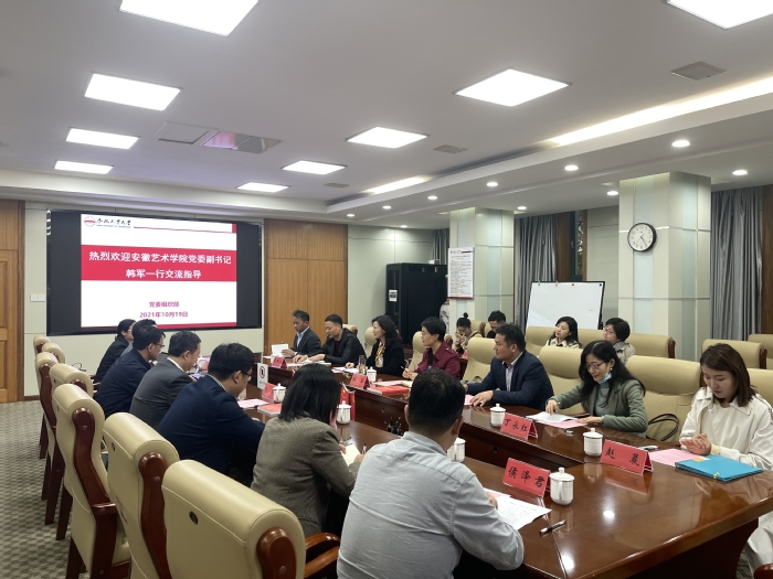 韩军介绍我校的基本情况和此行的调研目的。韩军表示,作为一所工科院校,合工大的党建工作取得了诸多成果,值得我校学习。作为艺术类院校,我校将党建与艺术相结合,在艺术思政等方面进行了诸多创新,并邀请工大师生来我校参观交流。