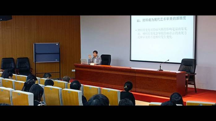 10月13日下午3点,由美术设计系主办的“材料,现代艺术审美的新维度”主题讲座在美术楼报告厅开展。讲座邀请中央美术学院博士、中国油画学会副秘书长宛少军作为主讲人,面向美术设计系全体师生学生。