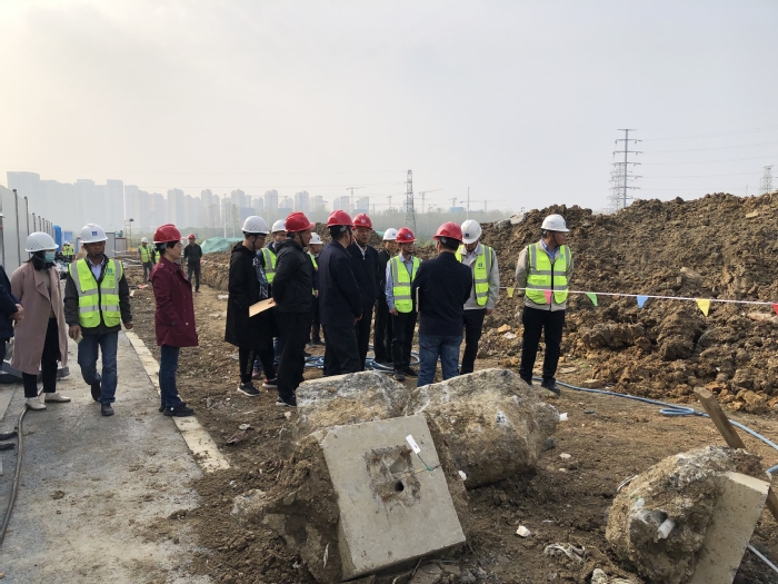 在学生宿舍D组团工地,校领导一行认真查看了临建设施、管道改建、工地扬尘治理及安全生产措施落实等情况,现场和各参建单位就施工进度、工程难点、质量监管等事宜进行了讨论,并提出了具体改进意见。