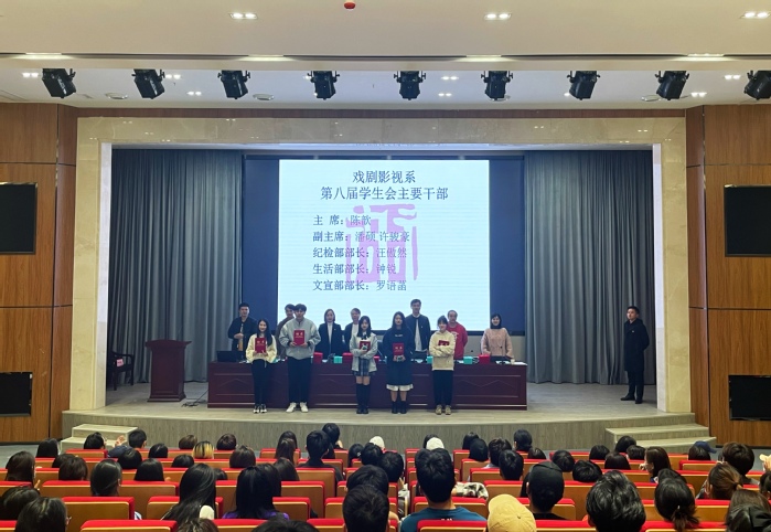 11月3日下午,戏剧影视系在综合楼五楼报告厅召开2021年学生干部聘任暨表彰大会。系党总支全体委员,学管办、学生党支部、团总支等部门负责人,辅导员代表及2021届全体新生参会。会议由系学管办主任冯传胜主持。