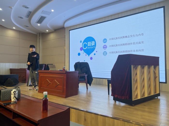 在近三个小时的讲座中,戴虎从中国民族民间舞蹈的概念和定义入手,深入浅出地为师生梳理“编排、编导、编创”三种创作范式之间的关系和互通,确立文化意义和精神审美领域对创作的根本性指引,受到了师生的一致好评。现场气氛热烈,师生踊跃探讨。