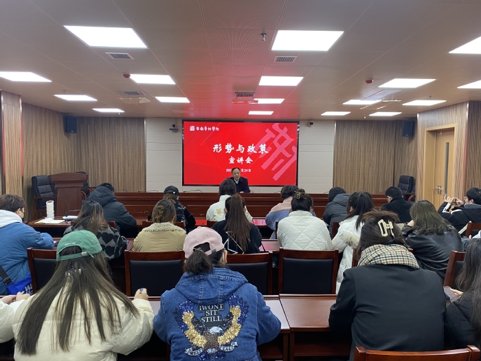 12月24日中午,校党委书记周明洁在综合楼717会议室为美术设计系20级数字媒体艺术1班全体学生宣讲党的十九届六中全会精神,并与学生亲切交流。