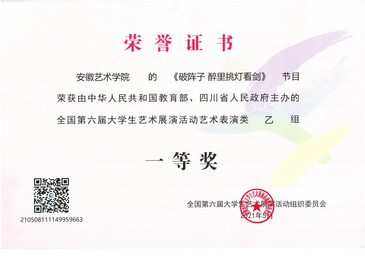 2021年5月,青年合唱团的合唱作品《破阵子·醉里挑灯看剑》荣获全国第六届大学生艺术展演活动艺术表演类乙组一等奖和“优秀创作奖”。