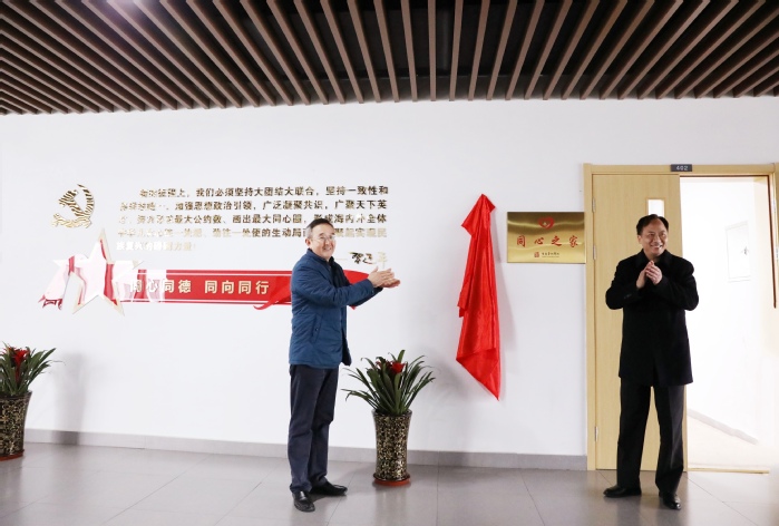 1月7日下午,学校在艺术设计楼402室举行“同心之家”揭牌仪式。校党委书记周明洁出席并为“同心之家”揭牌。各民主党派、统战团体负责人和党外知识分子代表等参加揭牌仪式。揭牌仪式由校党委统战部部长吴孔铎主持。