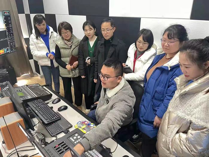 随后,与会人员在实训室进行了虚拟演播室实践教学操作培训。从画面拍摄到场景切换,从录音录像到剪辑合成,党员教师们认真聆听,虚心请教,逐一上手操作,为实践教学做好准备。 (撰稿:马宏 摄影:康宁 初核:尹广富 编辑:朱新水 审定:束舒娅)