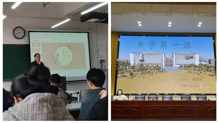 学管办主任陈伟伟和21级播音专升本班同学的“开学第一课”主题班会上,发起练声打卡等活动,激励同学们夯实专业基础。