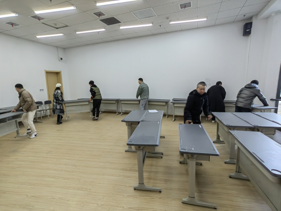 活动中,党员教师们归整课桌椅,针对可能出现的安全隐患做出详细排查。同时,对教学楼内各类教室教学用具查缺补漏,实现物品整洁有序、标识清晰到位。(撰稿/摄影:季伟 初核:李伟 编辑:朱新水 审定:束舒娅)