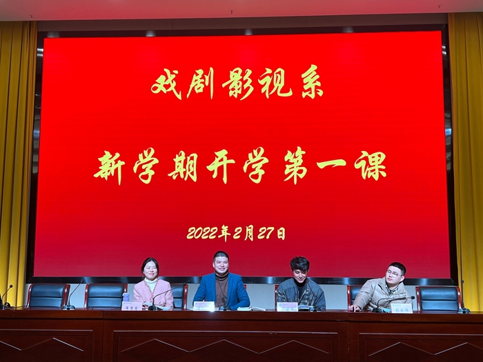 2月27日下午,戏剧影视系师生在综合楼五楼报告厅召开班会“开学第一课”。校保卫处处长陈雪峰、系党总支副书记冯传胜参加班会。
