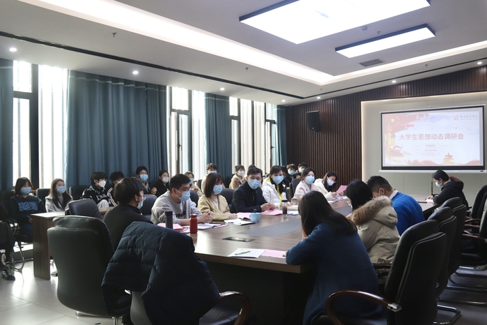 近日,新闻播音系召开2022年春季大学生思想动态调研座谈会。系党总支书记、主任蔡正兰,副书记曹磊参加会议。校各职能部门代表出席座谈。