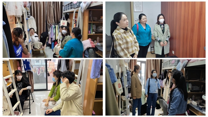 4月20日傍晚,曹晓燕、张丽丽、辛思洁、高萍萍几位老师爬上A1宿舍楼六层,与青年学生们坐在一起,亲切交谈交心。发现学生学习中遇到的困惑和封校期间产生的低落情绪,老师们耐心解答、合理引导。