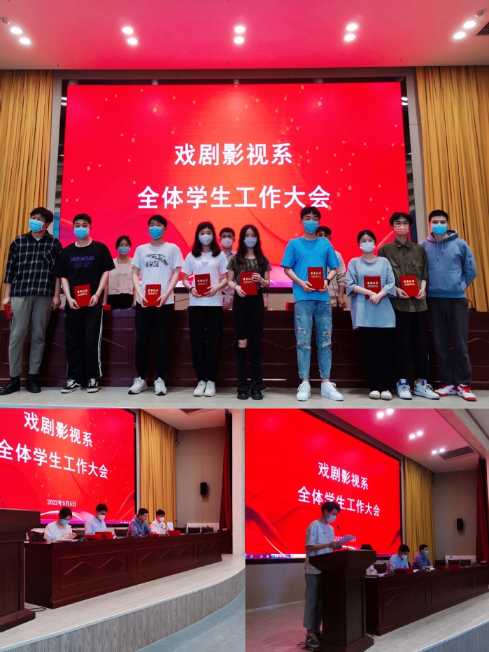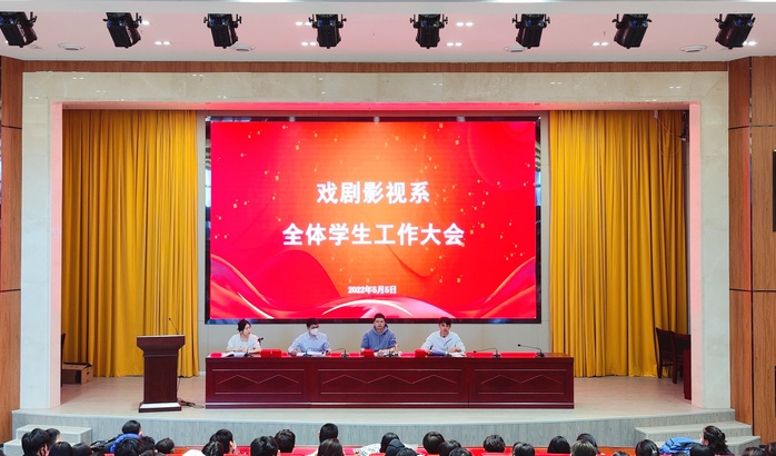 5月5日,戏剧影视系师生在综合楼报告厅开展防疫工作表彰和学士学位迎评工作动员,用青春和热血庆祝五四青年节。系党总支副书记冯传胜出席活动。