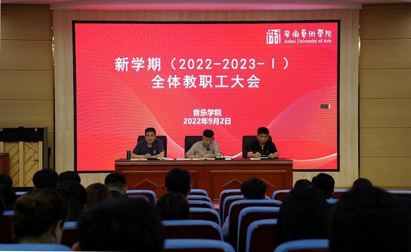 孙来法指出,新学期全体教师要本着立德树人的理念,加快推进音乐产业建设、青年艺术家工程、精品课程等项目建设步伐,着力弘扬传统文化,打造一批具有安徽特色的艺术作品,为学校艺术教育事业的发展贡献更大力量。(撰稿:张禹 摄影:李星 初核:孙来法 编辑:朱新水 审定:束舒娅)