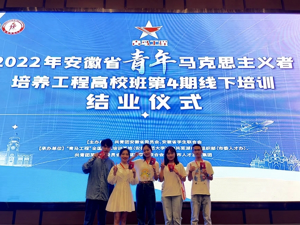 近日,我校选派7名学生干部分期赴芜湖参加2022年安徽省青年马克思主义者培养工程高校班第3期和第4期线下实践培训。培训期间,我校学生夏梦慈作为学员代表在结业典礼上领取“青春芜湖宣传大使”证书。