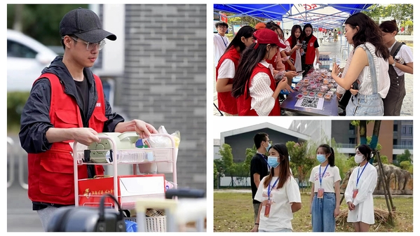 志愿者们在学校北门、各学院报到处、宿舍等区域为新生提供道路指引、行李搬运、解疑答惑等服务。
