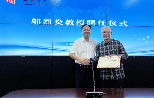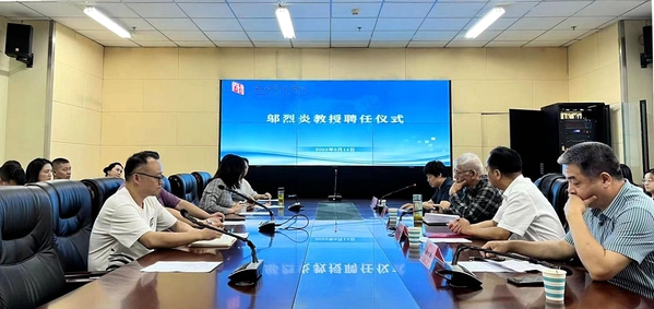 9月14日下午,邬烈炎教授聘任仪式在设计学院四楼第二会议室举行。校党委书记周明洁出席聘任仪式并向邬烈炎教授颁发设计学院教学顾问聘任证书。党委委员、副校长柳友荣参加。