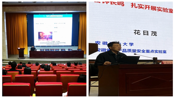 10月19日下午,学校在综合楼5楼报告厅组织开展实验(实训)室安全管理培训,邀请安徽农业大学教授、博士生导师,安徽省农产品质量安全重点实验室主任花日茂作题为《警钟长鸣 扎实开展实验室安全》的专题讲座。教务处处长韩大国出席讲座。