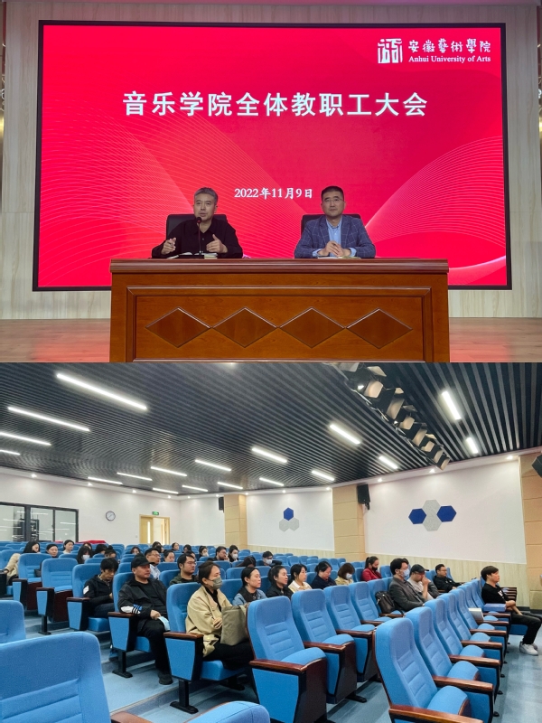 11月9日下午,音乐学院全体教职工大会在音乐南楼报告厅召开。会议由校党委委员、音乐学院党总支书记、院长孙来法主持。